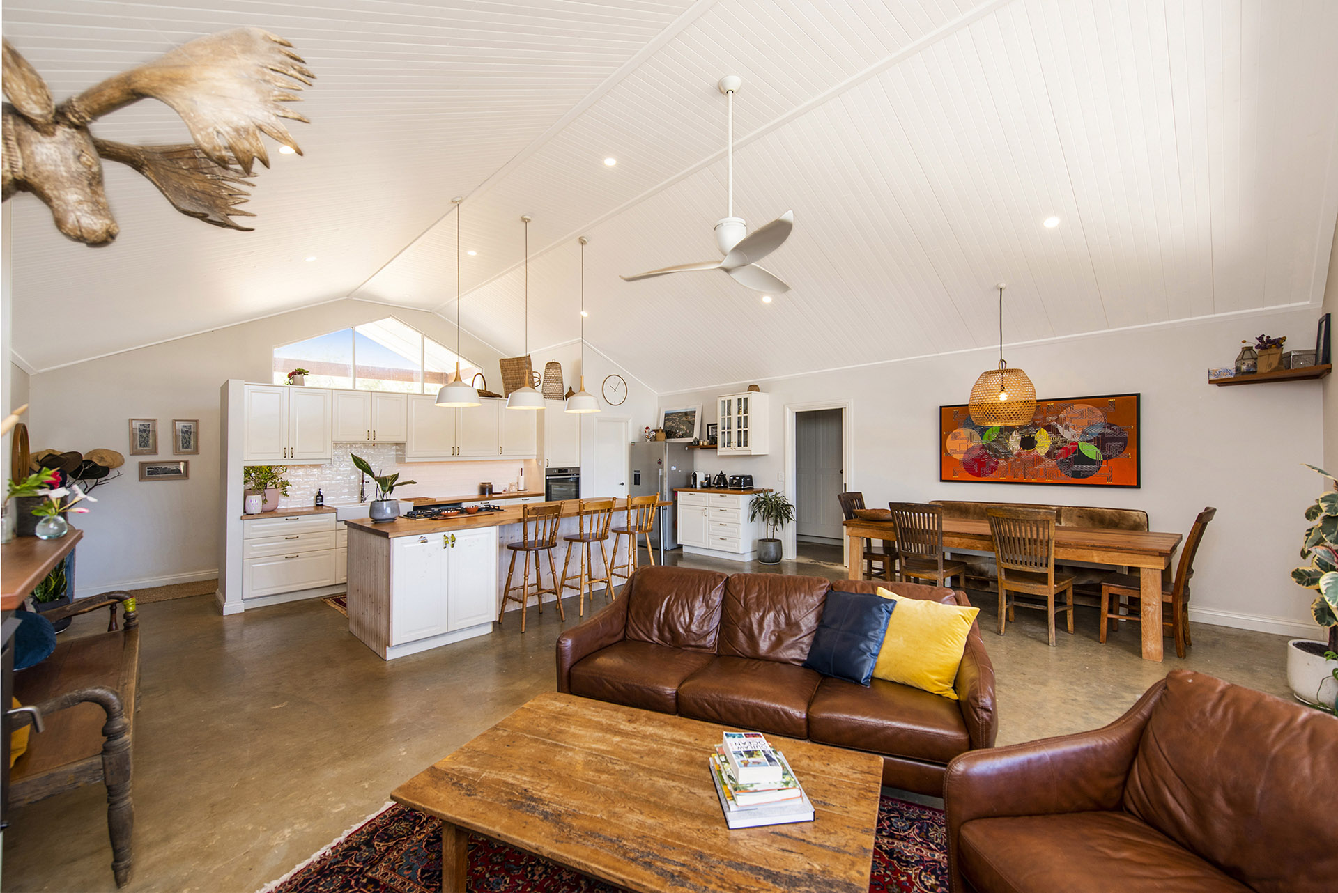Looking out the windows, you can take in the seclusion of the property, glimpsing birds in the trees or spotting the kangaroos nibbling grass in the paddocks.